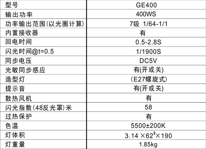 GE系列閃光燈,功率為分為300WS,400WS